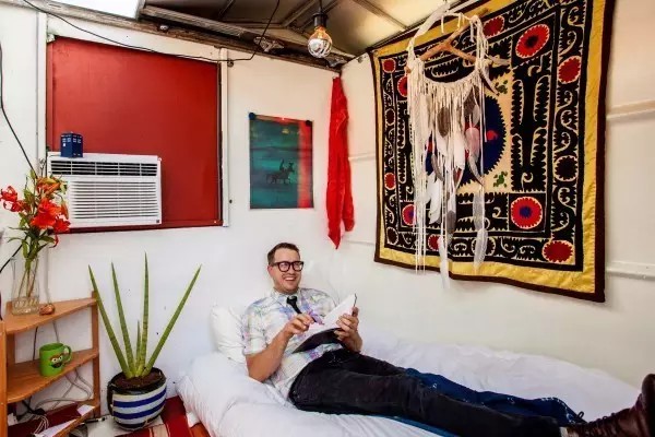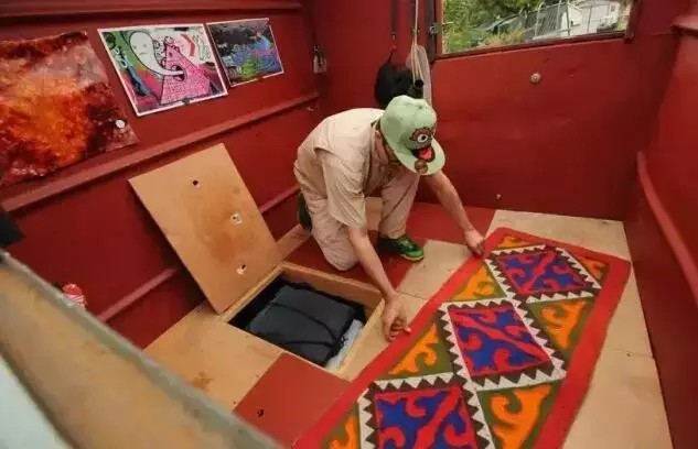 看到威尔逊欢乐地从垃圾箱里蹦进蹦出,可不要以为这是什么一时兴起的行为艺术,因为他在垃圾箱里已经住了一年,还把小小的居住空间,升级成了这样的极简智能住宅。
