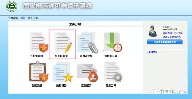 已经取得排污许可证的排污单位可登录国家排污许可申请子系统,在业务办理板块选择“许可证变更”模块,申请变更排污许可证。