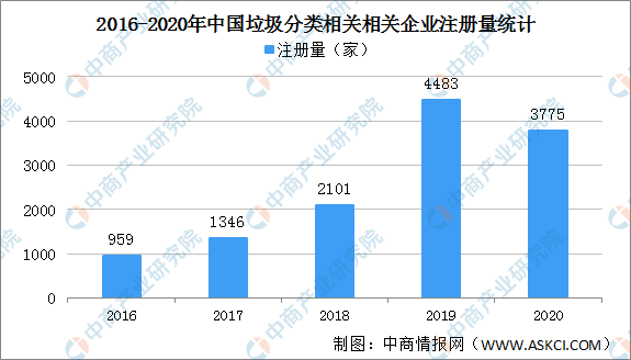 垃圾分类庞大的市场空间吸引了投资人和创业者纷纷进场,成为当下创投行业的一大热门。企查查数据显示,我国垃圾分类相关的企业注册量呈现增加的趋势。2016年垃圾分类相关企业注册量不足1000家,2020年的注册量为3775家。加快推进生活垃圾分类和处理设施建设,提升全社会生活垃圾分类和处理水平,是改善城镇生态环境、保障人民健康的有效举措,对推动生态文明建设实现新进步、社会文明程度得到新提高具有重要意义。中国重视垃圾分类,垃圾强制分类时代,垃圾分类市场潜力巨大。