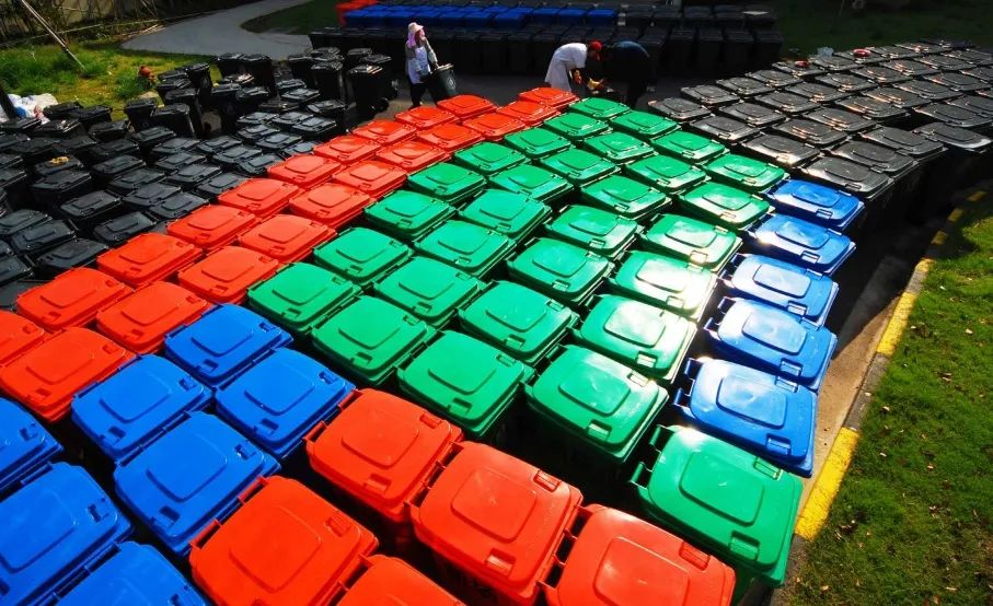 2008 年,各色垃圾桶清洗一新,整装待发,汇聚成为城市里的一道“彩虹”