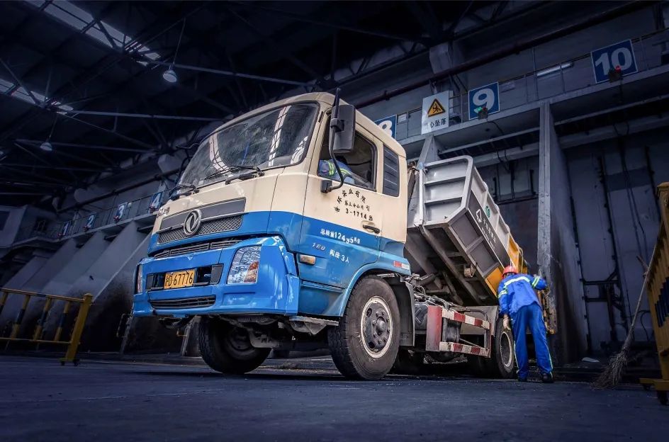 ⑤  2003 年初,江桥垃圾焚烧厂投产时第一辆垃圾车卸料