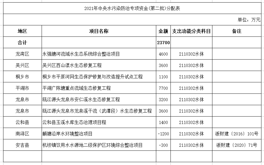 原标题:浙江省财政厅 浙江省生态环境厅关于下达2021年大气污染防治、水污染防治资金(第二批)的通知