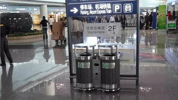 首都机场T3航站楼的一些垃圾桶,是利乐包循环利用的产物,但像这样的出路依旧很少。