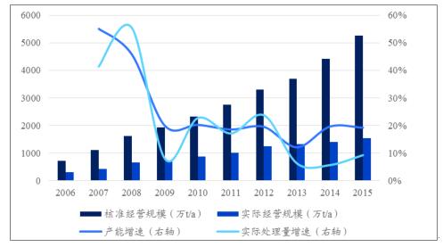 根据环保部统计数据,2015年,246个大、中城市工业危险废物产生量达2801.8万吨,其中,综合利用量1372.7万吨,处置量1254.3万吨,贮存量216.7万吨。由于该数据统计区域较少、主要依据收储口径数据,仍有大量中小城市的未收储危废,未被统计在内。而我们估算,2015年我国危废实际年产生量约为1亿吨左右,因此危废收储率或不足30%。