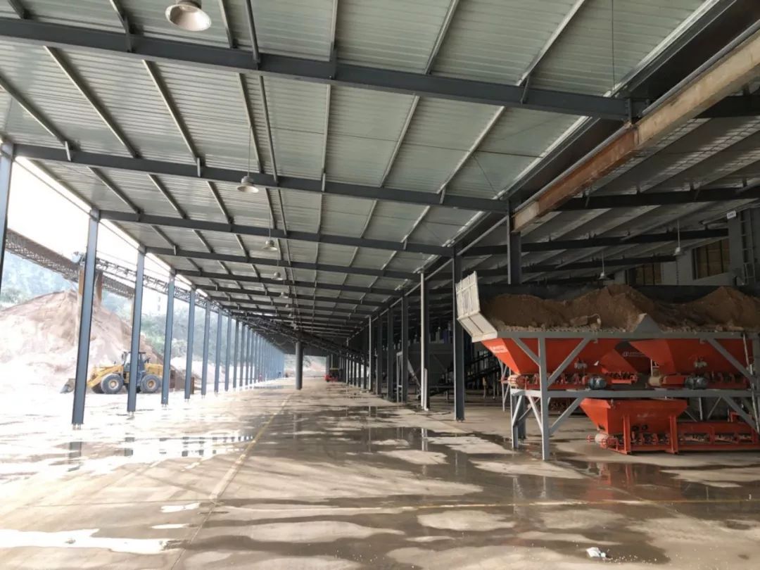 在这个工厂里,可以看到厂区内有一个大型的建筑垃圾处理堆场,建筑垃圾堆积成山。铲车来回忙碌着,将各类建筑垃圾搬运至垃圾破碎机里粉碎,分离后的材料从不同的传输带里送到封闭车间处理。