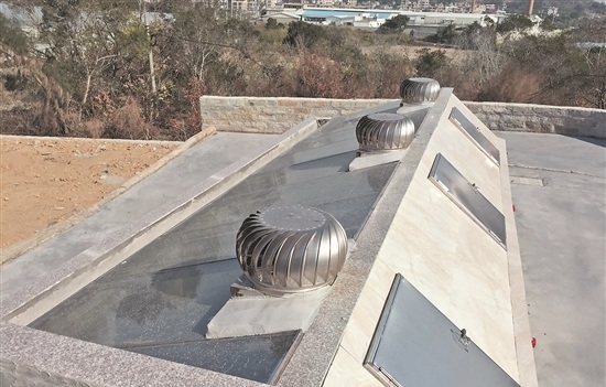 堆肥房屋顶由透明的太阳能采光板拼接而成