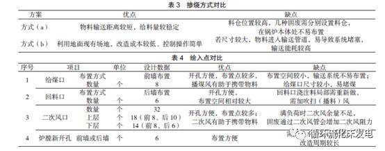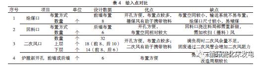 固废给入点有以下4种:给煤口、二次风口、回料口、炉膛新开孔,其优缺点如表4所示。对比以上几个给入点优缺点可见,选择回料口作为固废给入点较为合适。