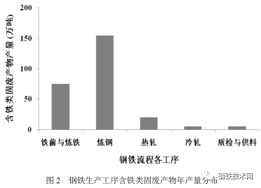 以年粗钢生产规模约 900 万吨的某长流程钢铁厂为研究对象,统计得出伴随钢铁生产各工序年形成固体废弃物约 608.5 万吨,主要为 “含铁类固废产物”、“含碳类固废产物”和“其他类固废产物 ”3 类。
