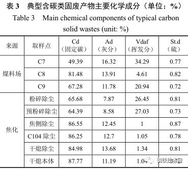 表 3 是典型含碳类固体废弃物主要化学成分,碳含量较高,适合回收利用。