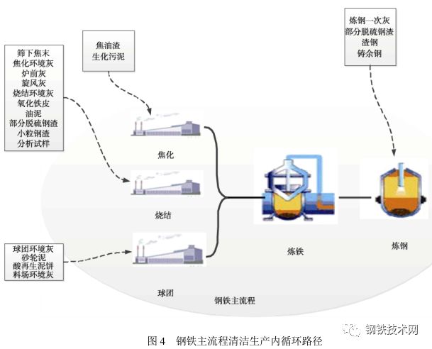 钢铁厂固废处理向四个方向开展工作,分别是: