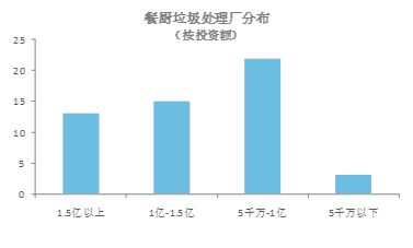 据E20数据中心不完全统计,目前在库餐厨项目处理规模基本处于200吨/日及以下,且50-100吨/日处理规模占比最多;投资额1亿元以下的餐厨厂占比约一半。从投资额与处理规模看,餐厨垃圾厂在市政基础设施投资建设中处于适中位置。