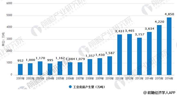 目前,我国工业危废处理行业整体现状表现为综合利用水平较高,无害化水平较低,不同细分行业表现又有所差异。相对来说,资源化利用由于能够回收资源价值,经济性较高,产生危废的企业还能通过出售危废获得收入,因此发展较快也较为充分。而无害化处置技术复杂、处理难度高,而且对于产生危废的企业带来较大的成本负担,发展较为缓慢,甚至还有大量倾倒丢弃事件发生。据前瞻产业研究院发布的《危废处理行业市场前瞻与投资战略规划分析报告》显示, 2014年,全国工业危险废物产生量为3633.5万吨,比2013年增加15.1%;综合利用量为2 061.8万吨,比2013年增加21.3%;处置量为929.0万吨,比2013年增加32.5%;贮存量为690.6万吨,比2013年减少14.8%。工业危险废物处置利用率为81.2%,比2013年增加了6.4个百分点。2015年我国工业危废产生量达到4220万吨,同比增长16.13%;综合利用处置率为83.6%,同比增长2.4%;2016年我国工业危废产生量达到4850万吨。