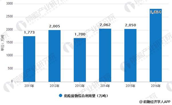 2016 年危废综合利用量为2824万吨,同比增长38%;处置量为1606万吨,同比增长37%。其中,危废综合利用指从危险废物中提取物质作为原材料或者燃料,即资源化处理;危废处置指将危险废物焚烧和用其他改变工业固体废物的物理、化学、生物特性的方法,达到减少或者消除其危险成分的活动,或者将危险废物最终置于符合环境保护规定要求的填埋场的活动中,所消纳危险废物的量,即无害化处理。
