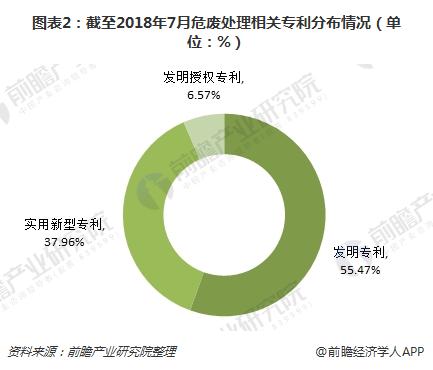 截至2018年7月2日,危废处理技术专利申请总量只有137项。其中,发明专利数最多,达到76项,占比为55.47%;实用新型专利数其次,为52项,占比为37.96%;发明授权专利数占比为6.57%。可见,我国危废处理行业技术还有很大进步空间,目前处于较低水平。