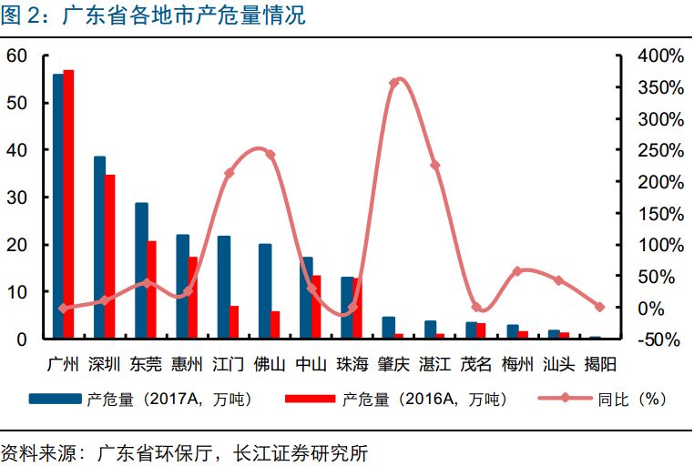 湛江/中山/珠海/深圳四地危废产量/危废资质量均超过60%,危废产能供给适中。
