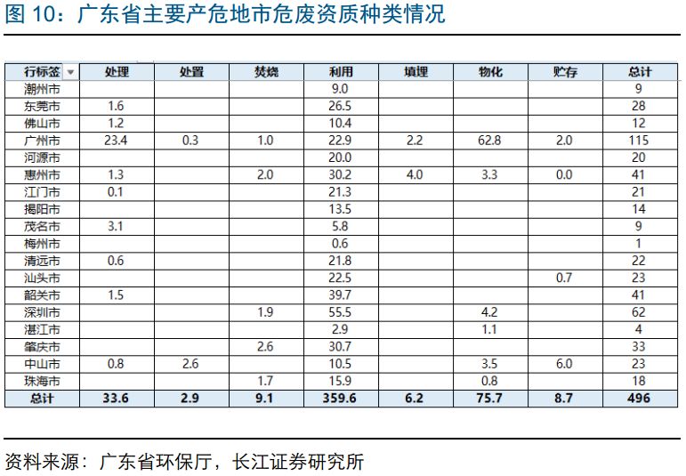 广东省危废资质核发量达496万吨,焚烧填埋能力极度稀缺。