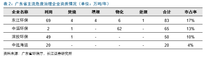东莞市:东江环保(12.3万吨利用,市占率44%)市占率较高;