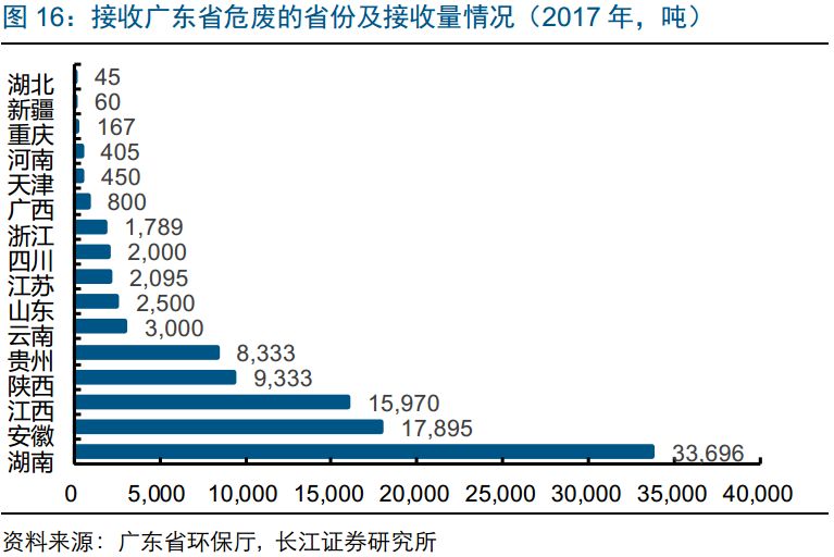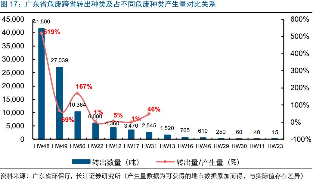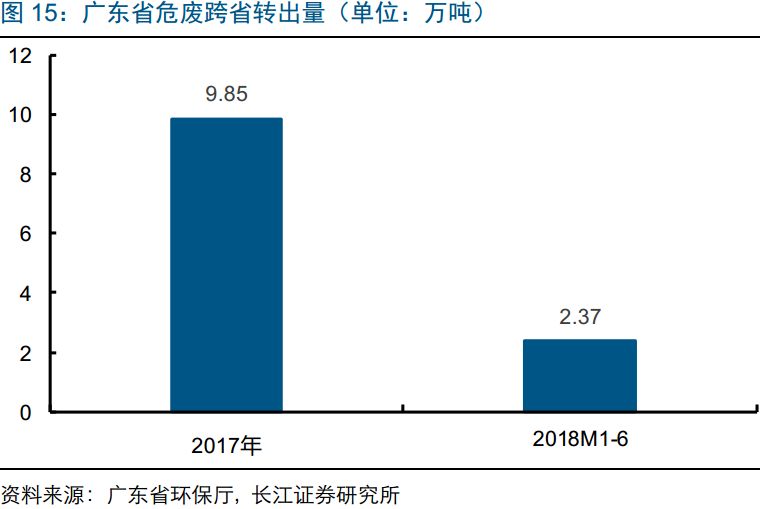 2017年跨省转出危废约10万吨,集中去湖南、安徽。