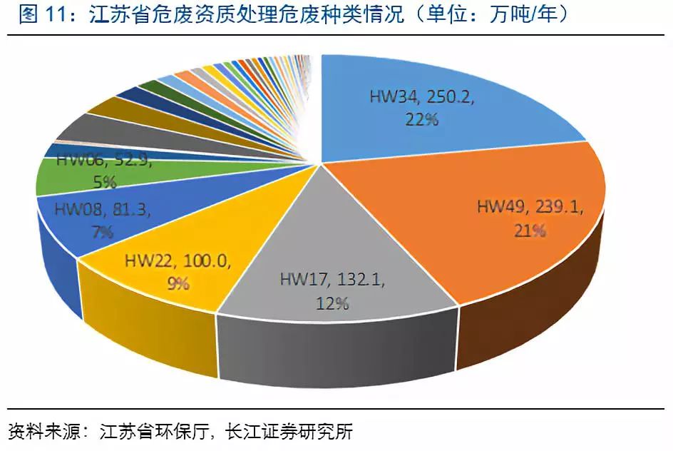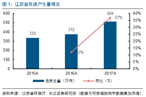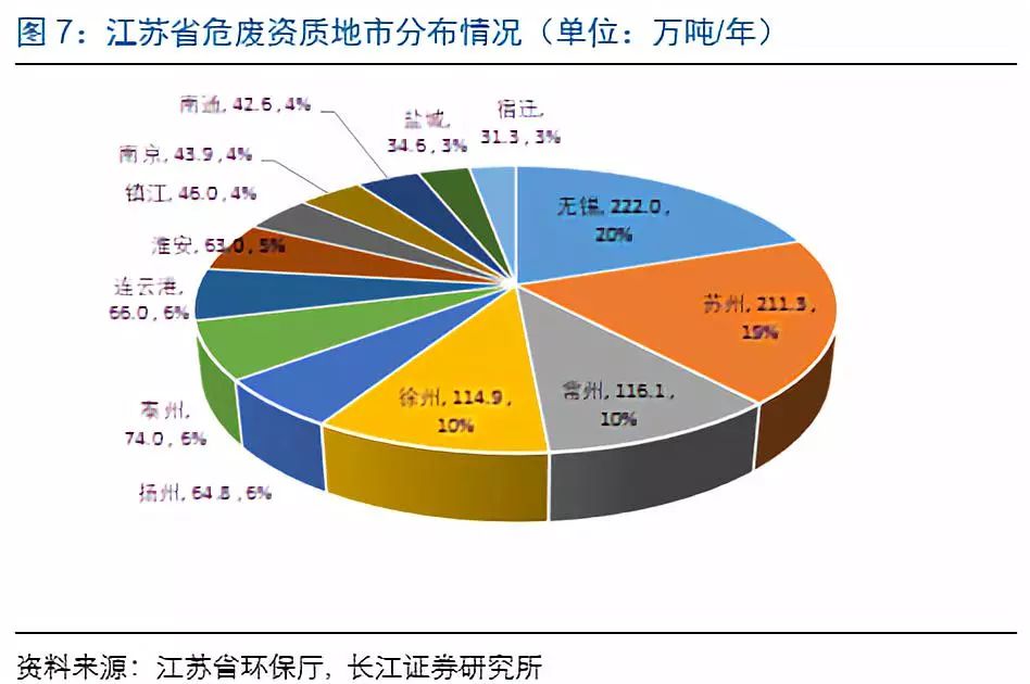 目前江苏省危废产能达1,130万吨,苏州无锡占38%