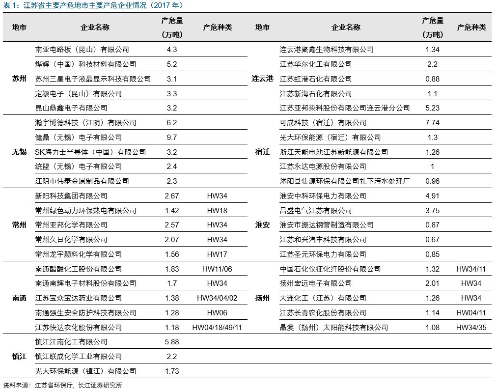 江苏省是我国产危大省,也是我国危废正规化治理水平较高的省份。本篇报告主要对江苏危废市场进行详细梳理。