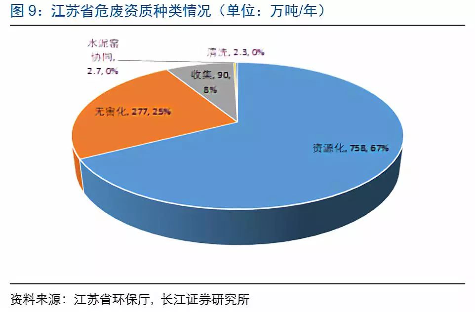 江苏省危废资质核发量达1,130万吨,无害化占25%。