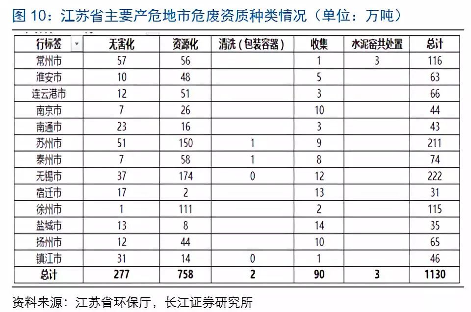 无害化资质相对稀缺,其中,徐州、泰州、南京、淮安无害化资质没超过10万吨,资质相对紧缺。