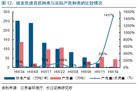 焚烧处置残渣(HW18)/精馏残渣(HW11)/含铜废物(HW22)比例分别为1457%、252%、106%,比例超过100%,资质不足;