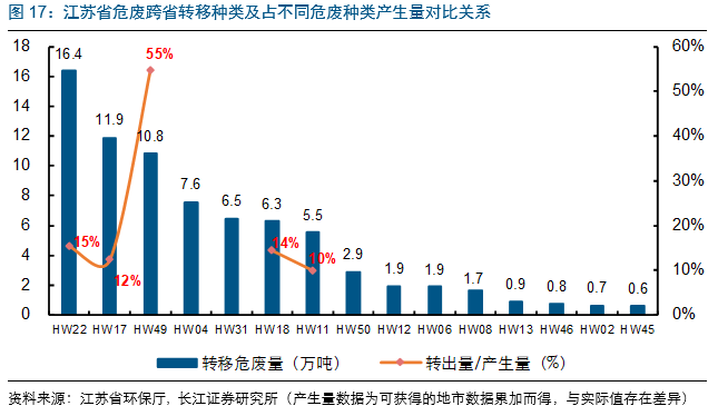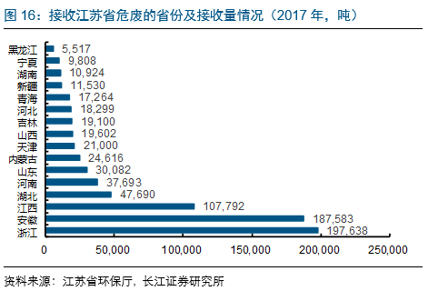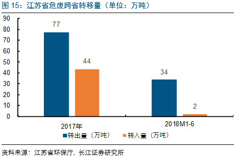 2017年跨省转出危废77万吨,集中去浙江/安徽/江西