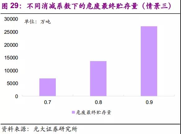 情景二:考虑官方统计量偏低,纳入危废隐性贮存,存量共计50600万吨。