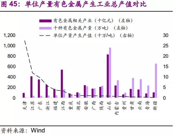 针对本次环保督察中有色金属冶炼废物存量较大的省份,我们发现两大特点。1)有色金属相关产业总产值占工业总产值比重较大。如甘肃、江西、青海、云南等地,占比均在10%以上。2)单位产量有色金属产生工业总产值较低。如内蒙古、贵州、甘肃、云南、青海、新疆,每吨总产值均低于7万元。