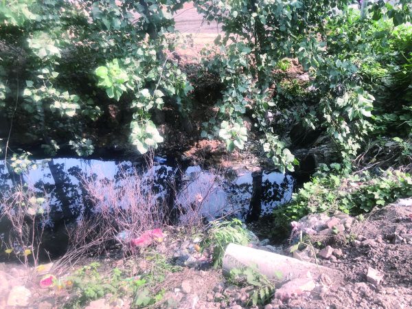 钟祥市柴湖镇卫生院旁的支渠内,因生活污水直排,水体已经呈黑色。