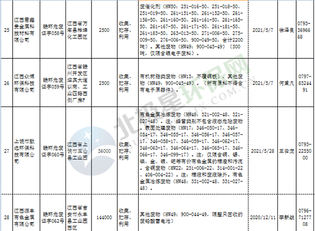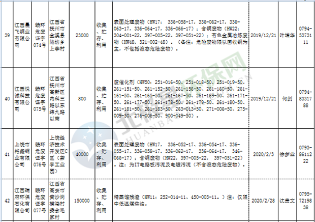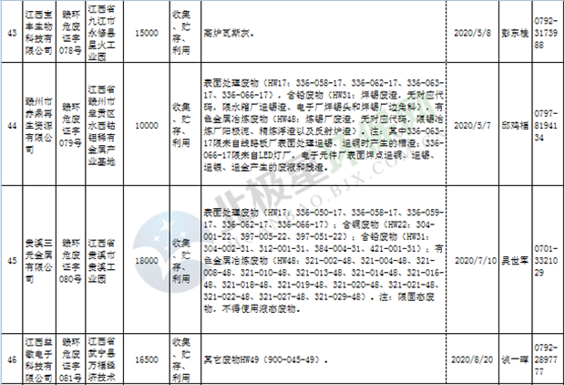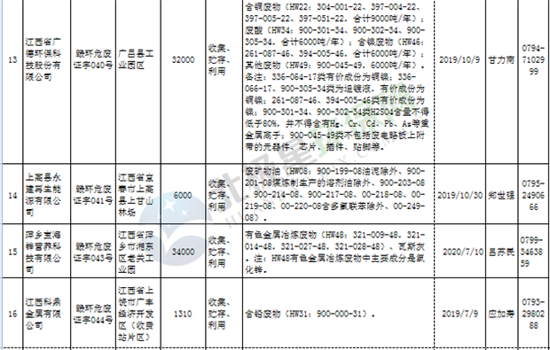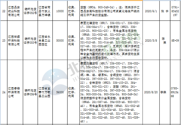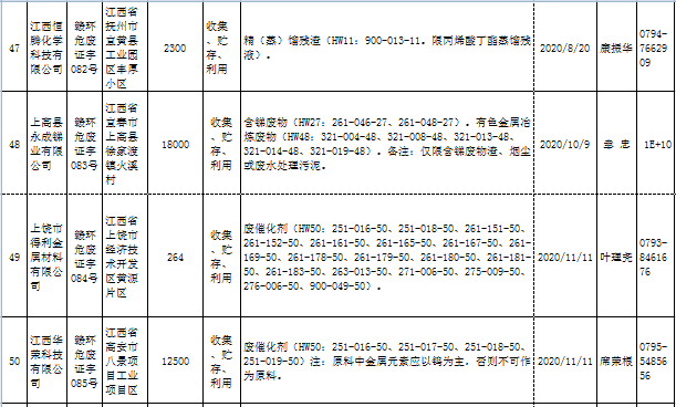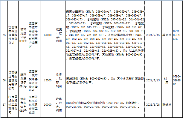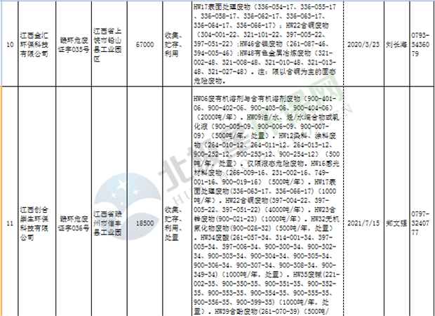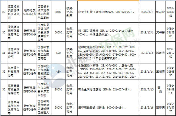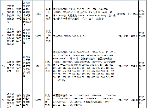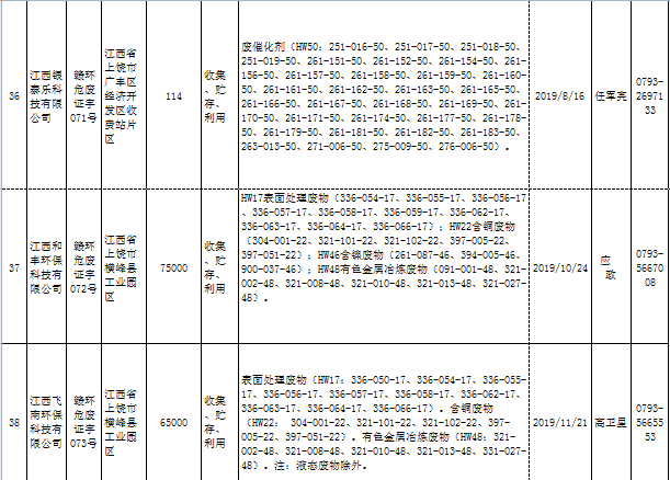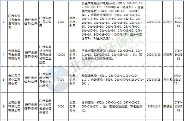 江西省临时危险废物经营许可证持证单位名单(省厅审批) 10月09日更新