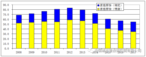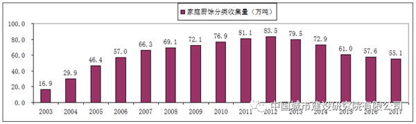 下图是台湾家庭厨余垃圾收集量的变化,2017年收集已经退回到10前的水平。