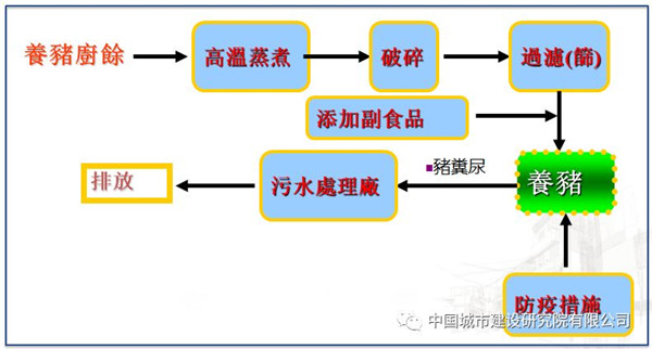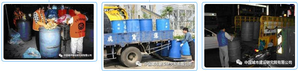 台湾家庭厨余垃圾分类收集时还进一步分为两类,一类称为生厨余,用于堆肥,一类称为熟厨余,用于喂猪。上图蓝色的是堆肥,黄色的是喂猪。由于缺乏堆肥场,分类收集的堆肥厨余最终大部分在焚烧厂焚烧处理。目前,台湾餐饮单位产生的厨余垃圾主要用于喂猪。