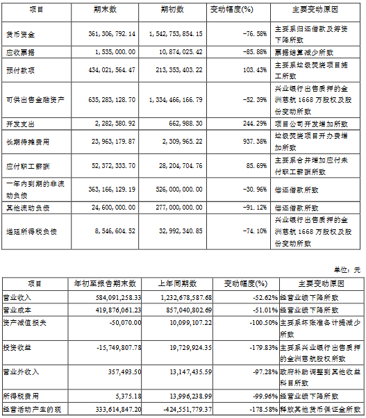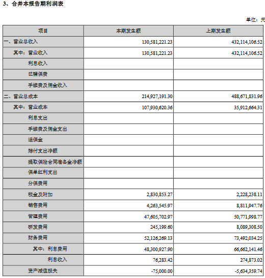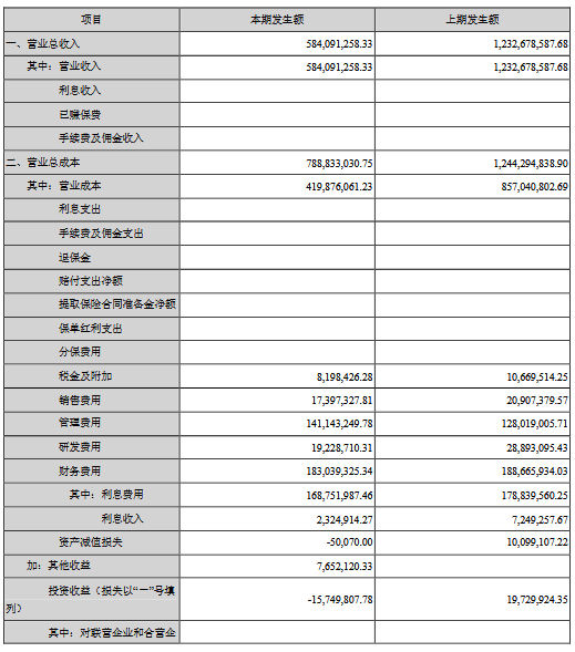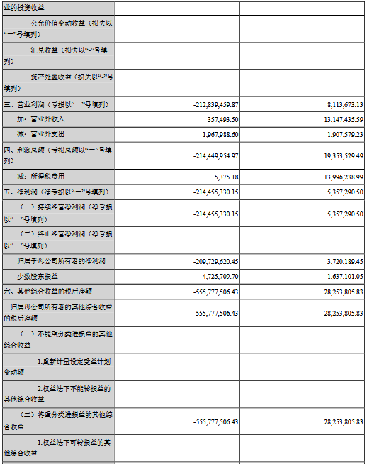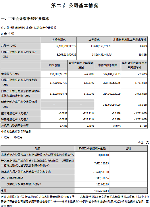 公告显示,公司前三季度营业收入584,091,258.33元,同比减少52.62%,归属上市公司股东的净利润-209,729,620.45元,同比减少5737.61%。