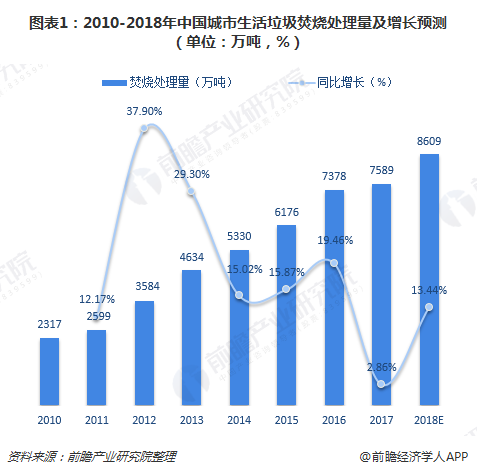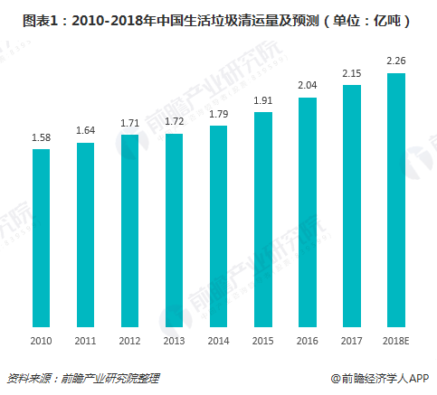 近年来,随着我国居民生活水平的不断提高,叠加城镇化的快速推进,生活垃圾产生量呈现逐年快速增长态势。2017年,我国生活垃圾清运量约为2.15亿吨,预计2018年在2.26亿吨左右。 垃圾处理是现代社会人类生活的刚性需求,垃圾是否得到清洁化处理,是现代文明的重要标志。虽然生活垃圾产生量逐年增加,但随着...