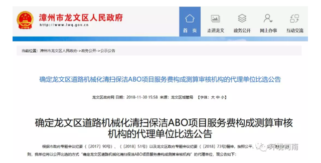 【中国环保在线 固废处理】来自漳州市人民政府、闽南日报、漳州人民广播电台等媒体消息,根据漳州市政府专题会议纪要(〔2017〕90号)、(〔2018〕51号)精神,漳州城投环境集团已以授权经营模式(ABO)获得漳州市“主城区、龙文区、芗城区”环卫运营项目(机械保洁、人工保洁、垃...